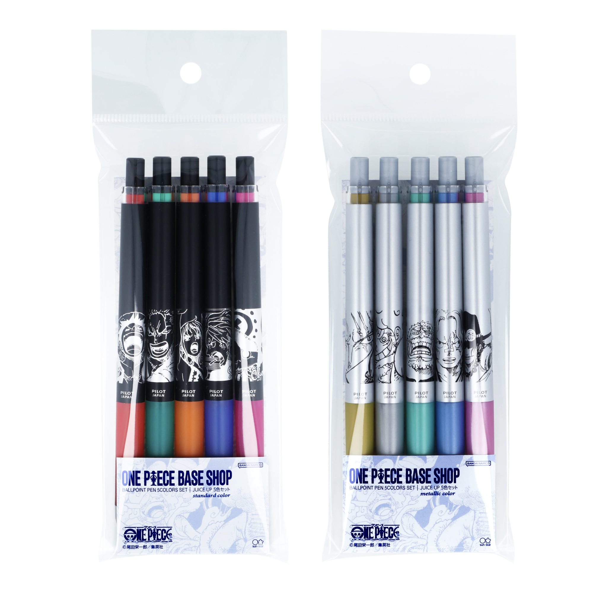 スタンダードカラーは麦わらの一味から、メタリックカラーはギア5のルフィとルフィにゆかりのある人たちで、それぞれ5色セットとしてまとめています。